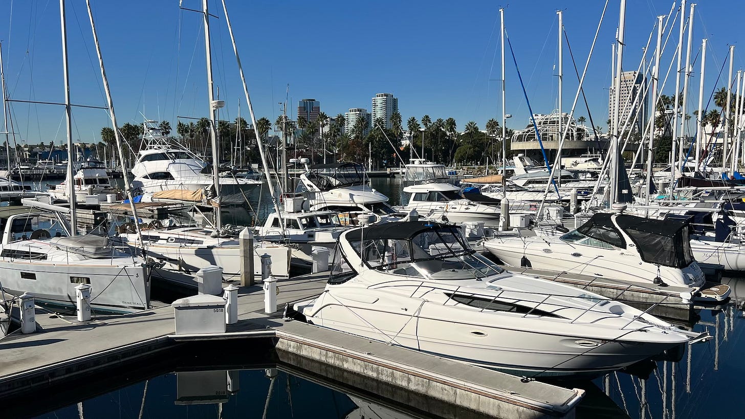 As I write this, Lisa and I are in Long Beach, California waiting to embark on our latest nomadic journey, a cruise from Los Angeles to Hawaii and Tahiti. We’re thrilled that our dear friends Bill and Chuck will be joining us. They arrived today, and we met near the marina for lunch at Outback Steakhouse to use a gift card someone gave us.